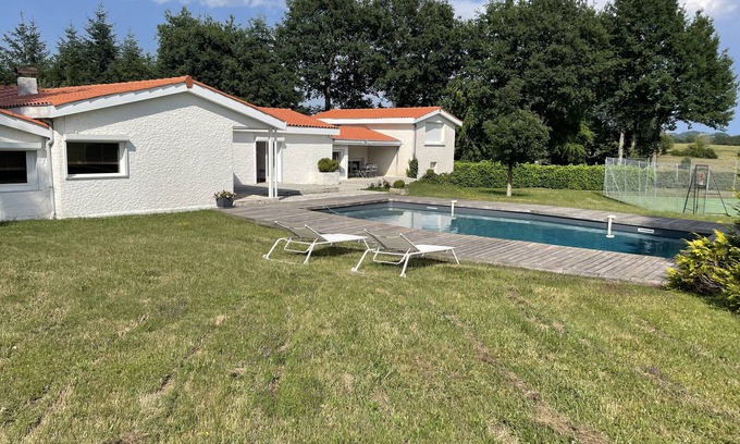 Contemporary house with swimming pool and tennis court has 3 Bedrooms , 2 Bathrooms, and max occupancy of 6 people. The minimum rental for this property is 1 nights, but this can change depending on the season you plan on staying. Previous guests have given good rated it, and VRBO labeled it a top-rated House because of the excellent services rendered by the owner or manager of this House, and has consistently provided great experiences for their guests. Most families or guests that use it recommend it to their friends and some of them are repeat guests. House has a friendly neighborhood, and the Saint-Paul-des-Landes has interesting places to visit. If you want to learn more about the House in Saint-Paul-des-Landes, such as places to visit and things to do nearby, you can check below to learn more.