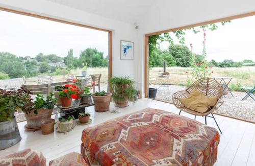 Contemporary light-filled living, sleeping 8 with sweeping country views by Woodstock & Blenheim Palace.