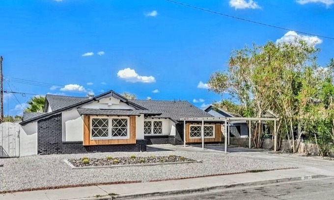 Welcome to our unique contemporary modern villa in Las Vegas. With an abundance of space, this residence offers room for all your desires. The spacious layout creates an ideal environment for entertaining, while the serene bedrooms provide a tranquil retreat. Embrace the Las Vegas lifestyle with this remarkable home that combines comfort and style. Step outside to discover a private swimming pool, perfect for cooling off during the sunny Las Vegas days. Lounge in the shade on our comfortable outdoor sofas, soak up the rays by the pool or take a refreshing dip in the crystal-clear waters. When it's time to unwind, the bedrooms in this home offer a serene and comfortable retreat. While the patio cover offers a shaded retreat. With a long carport for parking and a meticulously laid artificial grass area, this property truly marries style with functionality. Experience the epitome of downtown living in this upgraded haven.