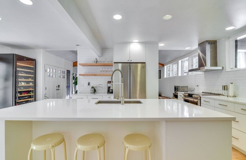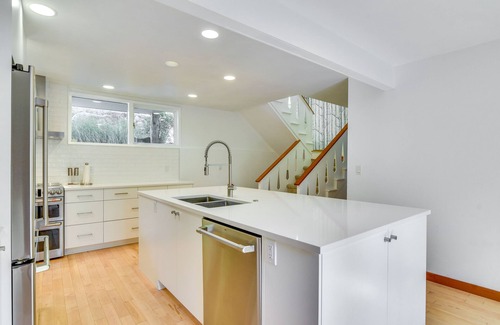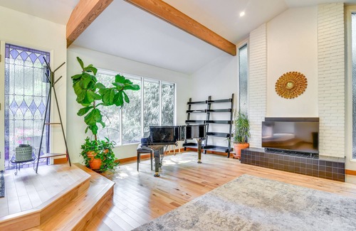 Discover your own personal sanctuary at this peaceful 3-bedroom, 2.5-bath vacation rental, designed for both adventure and solitude. Within a short drive, head downtown and explore the many markets, museums, and riverside parks that make Portland so unique, or wander the scenic trails and gardens right within the neighborhood. When the day's excursions are complete, come home to relax surrounded by nature on the private patio, or inside amongst mid-century modern, light-filled living spaces.
