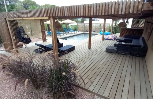 Spend some time at the nearby beach (enjoy the sun loungers!), relax by the outdoor pool, or sip a drink in the garden of this villa, which also features a deck or patio. For a change of scenery, come inside and enjoy the WiFi, TV, and stereo.
