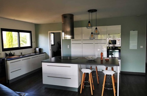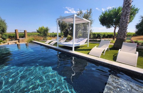 Beautiful 180m² villa on the ground floor facing south in the middle of a 15 hectare vineyard with a superb view and its infinity pool for ideal holiday in the countryside not far from the city and its beaches.