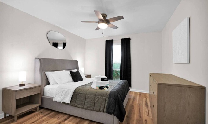 -Our bedroom offers a quant and homely feel with blackout curtains. Along with some of the most comfortable beds according to prior guests!