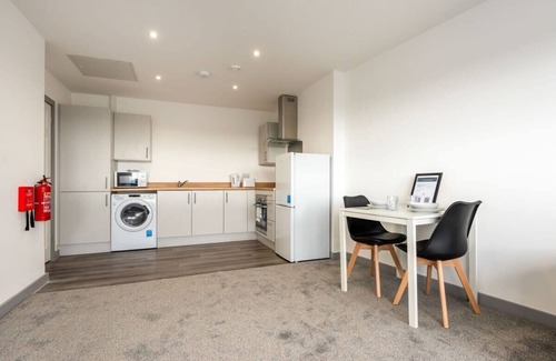 A spacious and bright 1 bedroom apartment, part of a modern development in Doncaster city centre. Situated in a great location in the centre of town, you will be within easy reach of all of Doncaster's attractions. The apartment features a fully equipped kitchen, modern bathroom, Wifi throughout and all the amenities needed for up to 2 guests to enjoy a comfortable budget stay in the heart of the city.