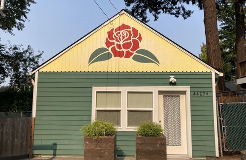 Modern 590' sq. house with handmade sight-specific furniture. Great room with entry, kitchen, office and living areas. Separate bedroom with queen size bed. Sofa bed in living area for maximum of 3 adults in the cottage. House located in quiet area, convenient to shops, laundry and public transportation. 14 minutes car travel to downtown Portland. Convenient parking on quiet street.