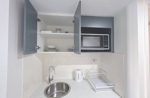 This studio is situated within the Mantra Chatswood building, conveniently positioned adjacent to the Chatswood Interchange. You can simply cross the street to access the bus, train, and metro stations. Chatswood is affectionately referred to as "the center of the world" by the locals. Additionally, you can easily walk to Chatswood Chase and Westfield Chatswood Shopping Centres.