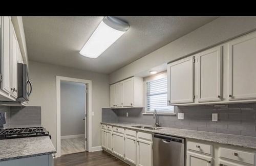 Newly renovated 3 bedroom 2 bath home right in the heart of Northwest Arkansas. With a full kitchen and laundry room stocked for your stay. Beautifully decorated with cable and wireless Internet for your comfort. The attached garage keeps you out of the rain and the location is settled in a beautiful established safe neighborhood just a mile off of I-49. You will not be disappointed. The master suite contains a king bed for your comfort with 2 queens in the other rooms.
