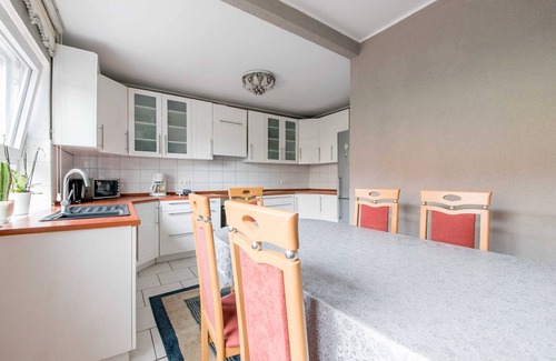 The landlord lives during the booking period in a basement apartment under the house. The guests therefore have all floors exclusive of the basement for themselves. Please let us know your arrival time in a timely manner. The keys are handed over on the day of arrival directly in the booked apartment / house by the landlord.