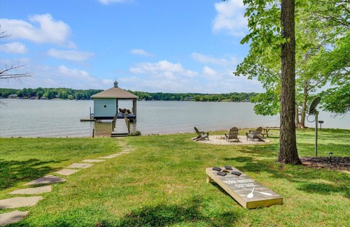 From the moment you pull into the driveway, you’ll notice something special: a rare, flat lot that makes getting to the water effortless. No steep hikes, no endless steps—just a gentle walk to the shoreline, where the lake is waiting. Whether it’s kids chasing each other in a race to the water, parents lounging with a cold drink, or grandparents dipping their toes in the water, this place is made for easygoing family fun.