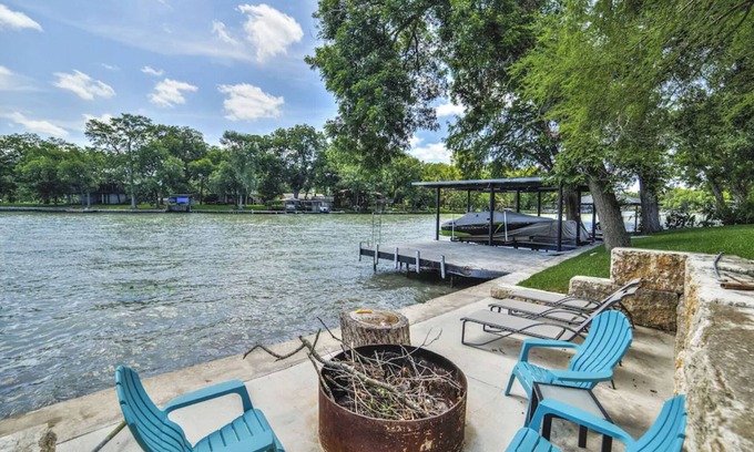 EASY 30 MINUTE DRIVE TO NCAA FINAL 4 DOWNTOWN SAN ANTONIO. This magnificent 3 bedroom, 2.5 bath home on the banks of the Guadalupe River features a fenced yard with gated entrance, an enclosed elevator, a large covered back deck with a gas grill. Since this is our personal home, you will find everything you need for cooking or baking. A ping-pong table and pool table, basketball goal, corn hole, free WiFi and printer available, a fire pit down by the water. The Master offers a King sized bed and sitting area with a private door leading to the covered back porch. The master also offers blackout shades for those wanting to sleep in. The guest bedrooms also both offer king sized beds. There are 2 sofas in the living room that will allow for an 8 person stay.