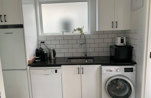 Stay in a 2 bedroom guest suite with the master bedroom and living space downstairs and a cool loft bedroom and living space upstairs, with a smart tv, all separated from a larger house by a locked door. It’s warm and sunny with parking outside for 2 cars. Washer/dryer, bathroom and kitchenette with a microwave, airfryer, kettle, toaster, coffee machine, dishwasher, cups, plates, cutlery etc provided. It’s a 2 minute walk to the estuary to enjoy the bird sanctuary and amazing sunsets and a short drive to the famous ocean beach.