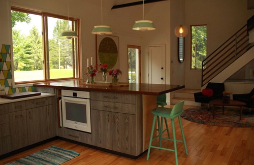 Come live the good life. Quietly bespoke, and furnished in a breezy, Scandinavian, our home was designed with small groups of discerning travelers in mind seeking a quiet, elegant retreat. Unlike many Cooperstown rentals, this is not a suburban-style home, nor a mega-mansion, nor a rough-and-tumble colonial party house. We offer instead a thoughtfully designed, clutter-free space with refreshing cottage charm. Bedrooms feature high-quality beds, fresh crisp linens, and ample clean storage space. Bathrooms feature European fixtures, distinctive tile work, and heated towel racks. Lastly, the main floor offers a relaxed gathering space with an open-plan living room, a large and well-stocked kitchen, and 9-foot black walnut dining bar. All this, plus vintage furniture, original artwork, and unobstructed views of nature in all directions.