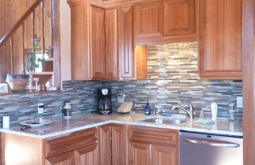 The open loft bedroom has sliding doors to small veranda. In hot summer months we put an air conditioner in the sliding doors, which blocks access to veranda, but keeps you cool and comfortable inside. There is a dishwasher and the kitchen is fully equipped with microwave, dishes, cutlery, pots and pans and cups and glasses.