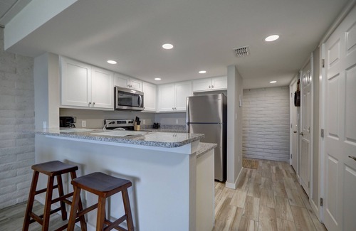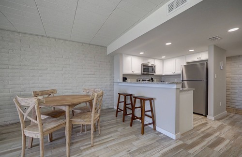 Coral Cay #121 is a beautifully remodeled 1-bedroom, 1 bathroom condominium located on the ground floor of the Gulf Front building. This condominium offers a Queen bed in the primary bedroom, a Queen sleeper sofa in the living area, and a beautiful full kitchen. This condominium accommodates a maximum of 4 guests.