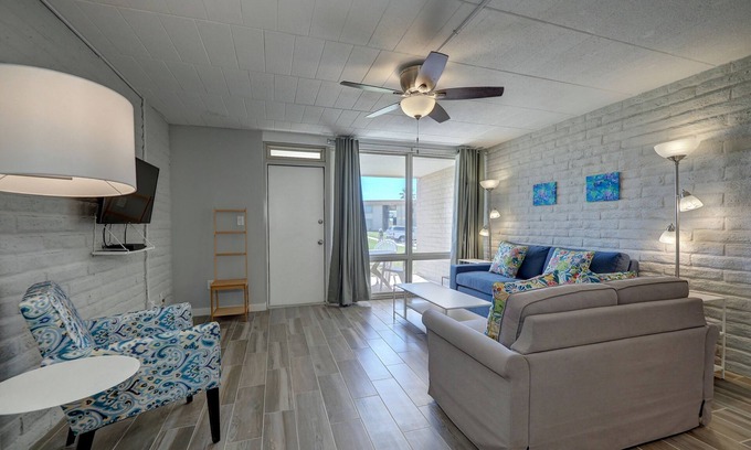 Coral Cay #127 is a remodeled 2-bedroom, 1.5 bathroom located on the ground floor of the Gulf Front building. This condominium offers a Queen bed in the primary bedroom, two Twins in the guest bedroom, a Queen sleeper sofa in the living area, and a full kitchen. This condominium accommodates a maximum of 6 guests.