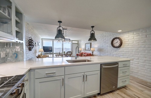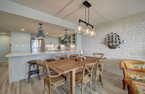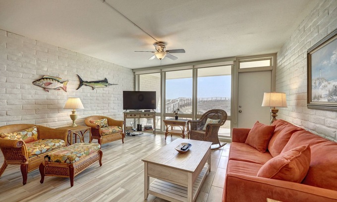 Coral Cay #130 is a newly remodeled 2-bedroom, 2 bathroom condominium located on the ground floor of the Beach Front Building. This spacious, well-designed condominium offers a King bed in the primary bedroom with an en suite bathroom with a walk-in shower, a Queen over Queen bunk bed in the guest bedroom with an en suite bathroom, a Queen sleeper sofa in the living room, and a full kitchen. This condominium is located near the boardwalk for beach access, and can accommodate a maximum of 6 guests.