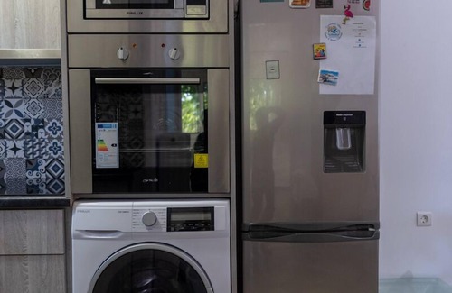 A unique country house by the sea. A duplex 100 square meter cabin built in the middle of 5 hectares of land. Surrounded by trees and nature offers privacy, peace and relaxation. A swimming pool will cool you off and make your days and nights special. Distance to the sea from your front door is 3 min on foot. Experience absolute tranquility away from city life and so close to a rewarded coastline at our Hacienta in Vrachati.