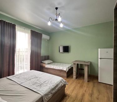 Corner house offers accommodations in Kobuleti, a 4-minute walk from Kobuleti Beach and 0.6 miles from Kobuleti Train Station. This vacation home provides free private parking and free Wifi. Ali and Nino Monument is 18 miles from the vacation home, and Gonio Fortress is 25 miles away. All of the air-conditioned units feature a private bathroom, flat-screen TV, fully equipped kitchenette, and balcony. The rooms are equipped with heating facilities. Petra Fortress is 3.1 miles from the vacation home, while Batumi Train Station is 15 miles away. Batumi International Airport is 21 miles from the property.