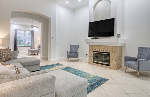 Corner lot home with screened pool + spa, game room, on-site golf, AC, & WiFi | House in Davenport