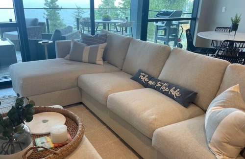 Brand new corner lakeview Condo on the 3rd floor overlooking the Okanagan lake. Master bedroom with King Bed and 2nd bedroom with Queen Bed.
