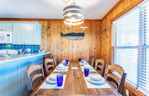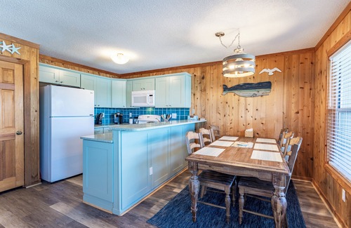 The home offers keyless entry, wireless internet access, and Smart TVs. The kitchen is outfitted so you can cook your meals here, and there is a deck with plenty of shade and a picnic table for meals outside.