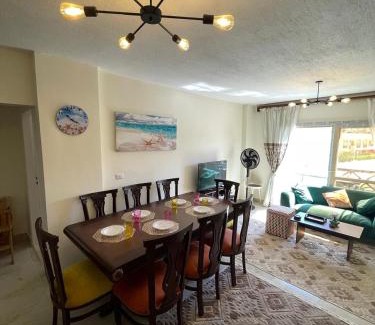 Coronado Horizon Azure North Coast is a recently renovated vacation home in Zāwiyat ‘Abd al Mun‘im where guests can make the most of the outdoor swimming pool, free Wifi, private beach area, and free bikes. This beachfront property offers access to a balcony. Guests have access to a spa facilities and wellness packages, and can also attend fitness classes. Offering a terrace and sea views, the spacious vacation home includes 4 bedrooms, a living room, satellite flat-screen TV, an equipped kitchen, and 3 bathrooms with a bidet and a shower. Towels and bed linen are offered in the vacation home. For added privacy, the accommodation has a private entrance and is protected by full-day security. There is a coffee shop, and a mini-market is also available. For guests with children, the vacation home offers outdoor play equipment. If you'd like to discover the area, cycling is possible in the surrounding area. El Alamein International Airport is 20 miles from the property.