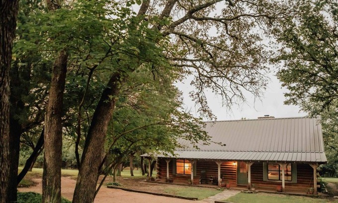 Set on two acres in the Elm Creek Valley, this 3/2 cabin offers a newly-renovated kitchen, outdoor fire pit with party lights, indoor wood burning fireplace, large porch with swing and room for outdoor dining, and reading loft with little free library, and creek access. Downstairs, the large master bedroom features a handmade king bed and desk, while the other bedroom has a queen. Upstairs, the bunkroom has two vintage army cots (narrow twin), couch, loveseat, and two floor mattresses (if needed). The bunkroom also has a large projection screen with Roku-sound bar for streaming your favorite movies. One bathroom is upstairs, and one is downstairs. Coronado's Cabin is 10 miles from Abilene State Park hiking trials and swimming pool and Lake Abilene; 10 miles from Sabrina Cedars; 12 minutes to Perini Ranch Steak House; and 15 miles from Dyess AFB.