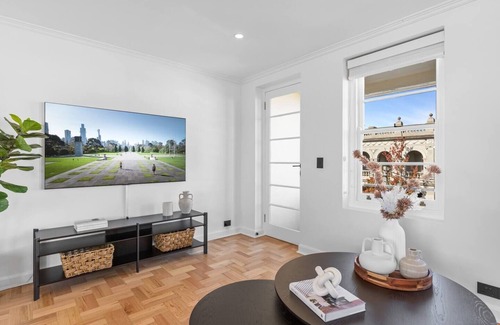 Located just 5 km from Melbourne's CBD and a scenic 20-minute stroll through the gardens to the MCG, this urban haven includes air conditioning, internal laundry facilities, a private study, and secure parking for one car.