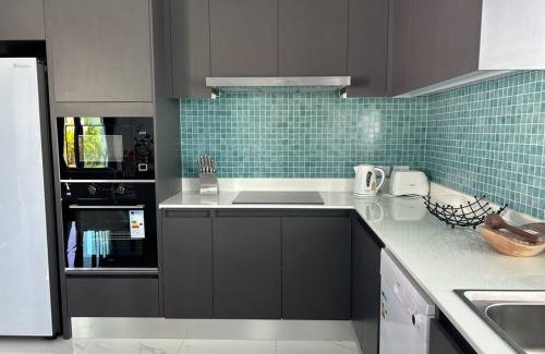 Costa Lota villa, brand new, 3 bedroom, in rawai V35 offers accommodations in Ban Saiyuan (1), 4.7 miles from Chalong Temple and 8.4 miles from Chinpracha House. The air-conditioned accommodation is 3.1 miles from Chalong Pier. There's free private parking, and the property provides a paid airport shuttle service. With free Wifi, this 3-bedroom villa offers a flat-screen TV, a washing machine, and a fully equipped kitchen with an oven and microwave. Towels and bed linen are featured in the villa. The accommodation is non-smoking. The villa also features an outdoor swimming pool and a hot tub for guests to relax in. A car rental service is available at Costa Lota villa, brand new, 3 bedroom, in rawai V35. Thai Hua Museum is 8.6 miles from the accommodation, while Phuket Simon Cabaret is 9.3 miles away. Phuket International Airport is 27 miles from the property.
