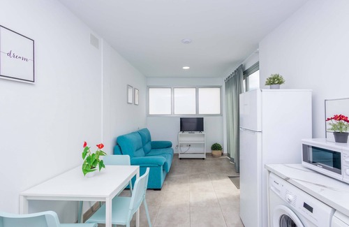 Modern and comfortable flat in a new building located in the north of Gran Canaria, only 200 m from the beach of San Andrés.The flat is located on the first floor of a holiday building, with capacity for three people, it has two bedrooms, one with a double bed and the other with a single bed. The flat is fully equipped with all the basic utensils necessary to enjoy a comfortable and carefree stay.The roof terrace-solarium is shared with two other studios and offers a spectacular panoramic view of the beach. The smaller terrace belonging to the flat is private. All amenities are close by. It is not necessary to rent a car, but we recommend it for flexibility. The driving distance to the city of Las Palmas is about 10min. Good connections to all parts of the island.Shared roof terrace - solarium on the roof of the building with sun loungers and dining table where you can have breakfast overlooking a magnificent view of the beach.