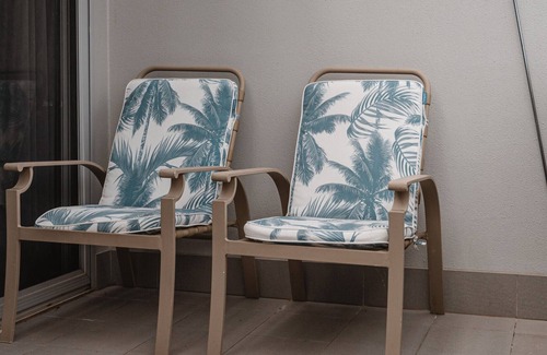 This chic apartment features homely decor that's accentuated by the abundance of natural light. Offering an open-plan living area, a spacious kitchen and bathroom, modern appliances, two bedrooms and a shaded balcony with outdoor seating and a view.