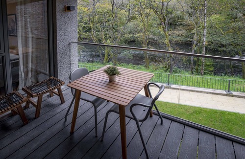 Contemporary two-bedroom apartment in Backbarrow with stunning balcony views. This apartment offers two king-size beds and a family bathroom, as well as balconies off both bedrooms, perfect for enjoying the beautiful surroundings. The modern kitchen is fully equipped with everything you need to prepare meals, and the living room is bright and spacious with comfortable seating. With easy access to nearby attractions, this is the perfect place to unwind after a busy day exploring.