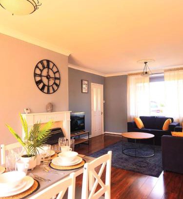 Cosy 3 bed house in Doncaster is located in Kirk Sandall, just 3.5 miles from Eco-Power Stadium and 5.1 miles from Cusworth Hall. This property offers access to a patio and free private parking. Clumber Park is 24 miles from the vacation home. With free Wifi, this 1-bedroom vacation home features a flat-screen TV, a washing machine, and a fully equipped kitchen with an oven and microwave. Towels and bed linen are available in the vacation home. There's also a seating area and a fireplace. Guests can relax in the garden at the property. FlyDSA Arena is 21 miles from the vacation home, while Belle Vue is 22 miles from the property. Humberside Airport is 37 miles away.
