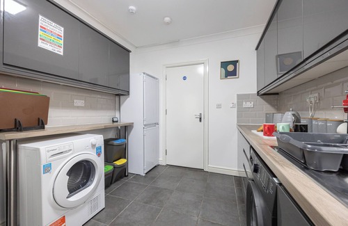Cosy 6-Bed Home with 2 Kitchen is located in Manchester. Cosy 6-Bed Home with 2 Kitchen provides accommodation, featuring TV, Security/Safety, Bedding/Linens, among other amenities. This House features TV, Security/Safety, Bedding/Linens, to make your stay a comfortable one.