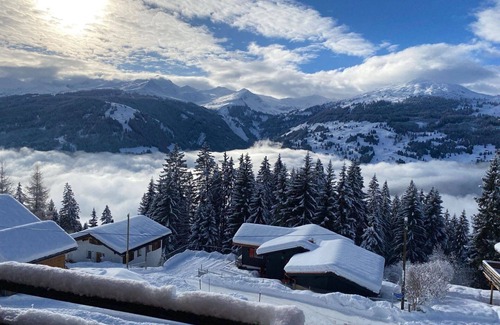 Located in Pany, this 40-year-old rustic vacation house offers a serene retreat with modern amenities including complimentary WLAN internet connectivity. The property features a sunny position with panoramic views, situated slightly elevated from the village center. The freestanding structure includes a spacious lot, and convenient parking facilities comprising several outdoor spots and a two-car garage. Year-round vehicular access is maintained, though winter chains may be necessary during snowy conditions.