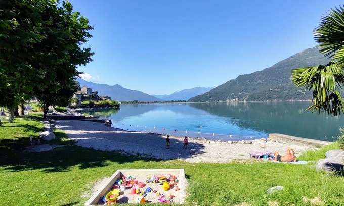 Guests can enjoy shared access to a garden and a bathing place. The property is conveniently located near various outdoor activities, such as a sandy beach "La Punta (Lago di Como)" 9 km away, a pebble beach "Verceia" 300 meters away, and a shingle beach just 5 meters away. Additionally, there is an outdoor swimming pool 12 km from the property and a marina 300 meters away. Cycling enthusiasts can take advantage of the cycle lane located 5 meters away, while fishing opportunities are available just 10 meters from the property.