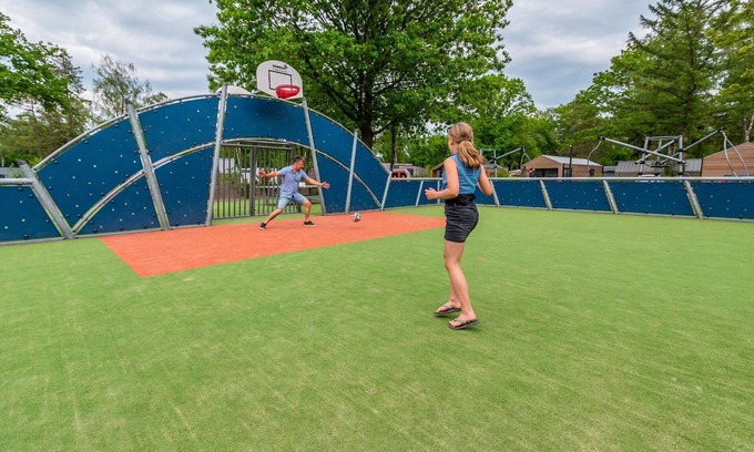 EuroParcs De Hooge Veluwe is a vacation rental located 8 km from the center of Arnhem, Netherlands. The property boasts a natural setting with trees, meadows, and a pond, along with amenities like a swimming pool, indoor pool (seasonal availability: July 1 to August 31, open from 9:00 AM to 4:00 PM), and facilities for boccia and children's playground. It offers a reception area, restaurant, sauna, fitness room, infrared sauna, trampoline, shopping facilities, and a shared washing machine (extra charge). Parking is available, albeit with a limited number of spaces, and an EV charging station is provided.