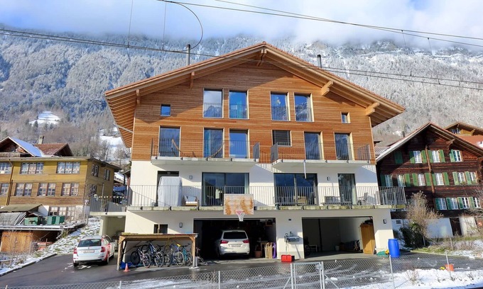 Modern, comfortable 2-family house "Hofstatt", 3 storeys, semi-detached. In a sunny position on a slope, 170 m from the lake. In the house: storage room for bicycles, central heating system. Narrow motor access to the house. Grocery, restaurant 450 m, café, bus stop 170 m, railway station 350 m, grass beach 170 m, outdoor swimming pool 1 km. Golf course (18 hole) 9.5 km, tennis 4.5 km, minigolf 4.8 km, walking paths from the house 10 m, skisport facilities 25 km. Nearby attractions: Jungfraujoch, Schilthorn, Freilichtmuseum Ballenberg. Well-known ski regions can easily be reached: Jungfrau Region, Grindelwald, Wengen 25 km. Well-known lakes can easily be reached: Brienzersee. Hiking paths: Jungfrau Region, Beatenberg. Please note: suitable for families. Groups of teenagers on request only. Railway line closeby.