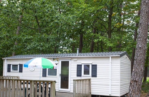 "Veluwe", 3-room mobile home 30 m2. Practical furnishings: living/dining room with dining table and TV. Exit to the terrace. 1 double bedroom with 1 double bed. 1 double bedroom with 2 beds. Open kitchen (4 gas rings, microwave, electric coffee machine). Shower/WC. Heating. Terrace. Terrace furniture. Reserved parking at the house. Please note: non-smoking house. Maximum 2 pets/ dogs allowed. Smoke alarm. When you bring a pet an additional cleaning fee of € 10 applies on top of the pet's costs, to be paid on spot.