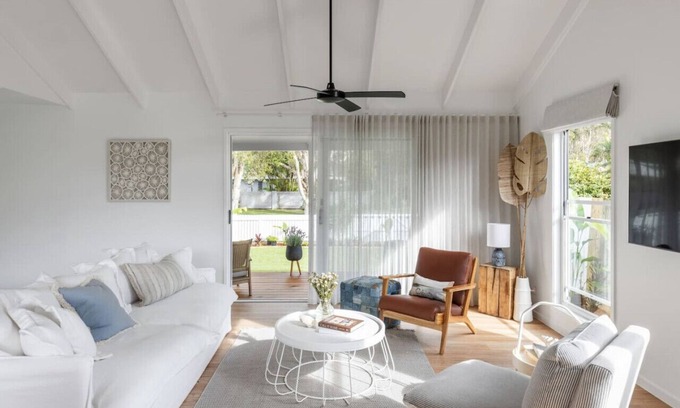 Time to relax, unwind and make memories at our breathtaking beach house. This luxurious 3-bedroom, 2-bathroom home with a study is nestled in the quiet neighbourhood of Cabarita Beach, just a 9 min walk away from the beach and shops.