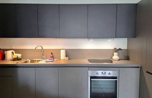 Discover URBAN 1, a modern and functional two-room apartment located in a newly built complex in Viganello and ideal for a relaxing holiday or a pleasant business stay. The spacious, open-plan living room is equipped with a modern, fully-equipped kitchen, perfect for preparing meals like at home and enjoying them on the beautiful 4-seater table that accommodates couples or families.