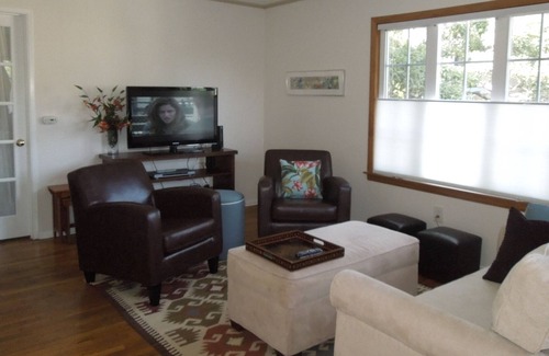 This charming and private two bedroom carriage house is a calm and easy apartment to be in. As comfortable as home but without the chaos. A quiet patio snug to the hillside is a great place to read or to enjoy a glass of wine at the end of the day.