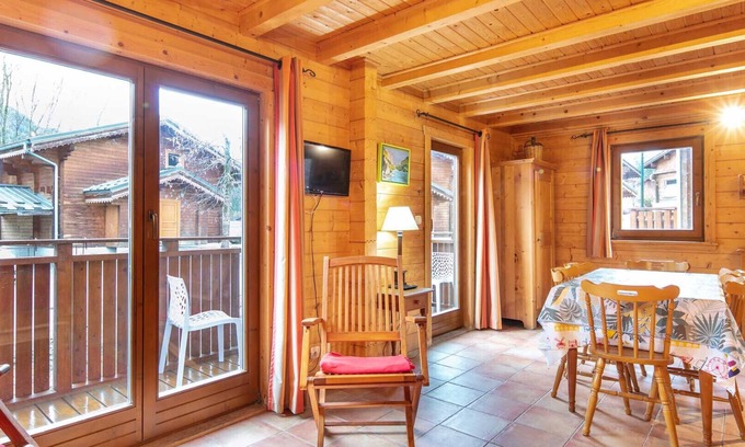 Relax by the communal pool or sip a drink in the hot tub of this 635-sq-ft chalet, which also features a garden and a balcony. As for the great indoors, you can come inside and enjoy the TV.