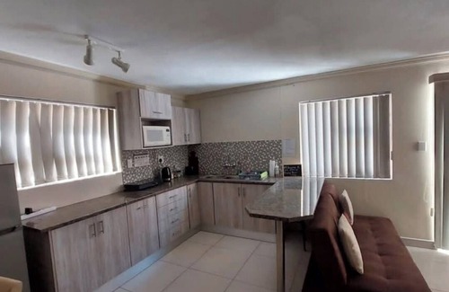 Welcome to your spacious, cozy, and modern self-catering retreat with its own private entrance. Perfect for couples or solo travelers, this safe and secure unit offers everything you need to unwind and relax in comfort. Unit 1, Double Bed Unit 2, Two Single Beds. Each Unit comprises a fully equipped Kitchen, Bathroom, Wi-Fi, DSTV, fan, and an Alarm system for Peace of Mind. Conveniently located just 400 meters from a shopping center with ATMs, a pharmacy, a laundry, and more. Within a 1 km radius, you’ll also find restaurants and a fuel station for easy access to everything you need. Plus, the ocean is only seven minutes away, perfect for a refreshing coastal escape.