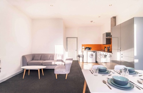 This stylish and spacious 2 bedroom apartment is located in a modern development in the heart of Blackburn town centre. Designed for comfort and convenience, it offers free Wi-Fi, a fully equipped open-plan kitchen and living area, a modern bathroom with complimentary toiletries and fresh towels, and 2 inviting double bedrooms.