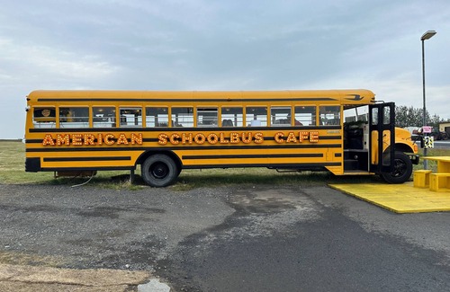 Just few meters from the cabin you find the only coffee house in Hella, The American Schoolbus Cafe.