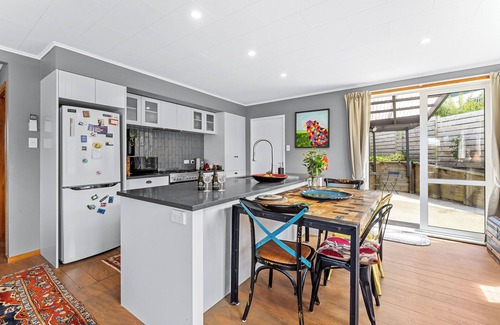 Nestled in the heart of Leigh, our Cosy Cottage blends classic Kiwi charm with modern comfort. 12 mins drive from Matakana and 15 mins from Omaha, it features 2 bedrooms, a sunroom, a modern kitchen, laundry and open-plan living that flows to the generous outdoor spaces and BBQ area. Steps from Leigh Eats for their famous fish'n'chips, Matheson Bay & Leigh Wharf for a refreshing swim, it's perfect for exploring Matakana market, wineries, scenic coastal trails, and Goat Island's marine reserve.