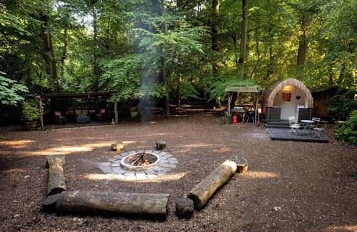 Completely dog friendly the Glampsite is set in 10 acres of beautiful private woodland to explore, make dens, spot wildlife and the children can go wild, safely roaming through the maze like paths. We also have ducks geese chickens and peacocks in the garden for the children to make friends with!