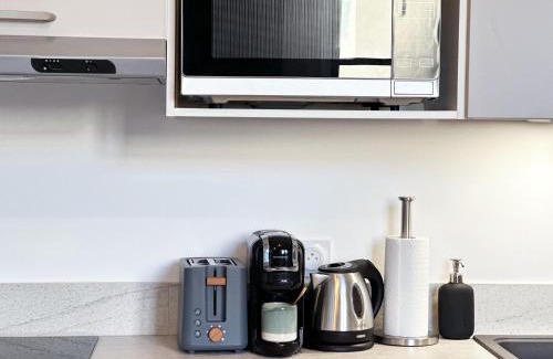 BathroomBathtub or shower, Free toiletries, Toilet paper, Toilet, Towels, Body soap, ShowerMedia & TechnologyFlat-screen TV, TVGeneralSmoke Alarm, Heating, Air conditioning, Trash cansKitchenWashing machine, Electric kettle, Kitchenware, Refrigerator, Dining table, Coffee machine, Microwave, Kitchen, Cleaning products, ToasterBedroomWardrobe or closet, LinensViewCity viewAccessibilityUpper floors accessible by elevator, Accessible by elevatorBuilding CharacteristicsPrivate apartment in buildingRoom AmenitiesSofa bed |