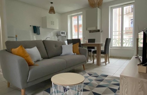 Spacious flat for two people, you'll love the accommodation for its brightness and location. Ideal for couples and travellers. Located less than 10 minutes' walk from the thermal baths, spa-goers benefit from a preferential rate. Please contact us before booking.